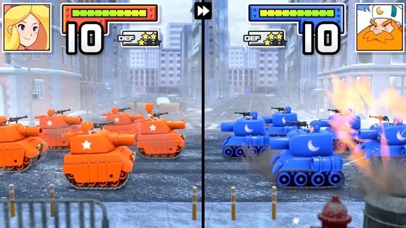 The first game, Advance Wars, sees you playing as one of three commanders. Each has different abilities that can help you in a pinch, like healing or buffing units. You’ll battle through a number of missions.