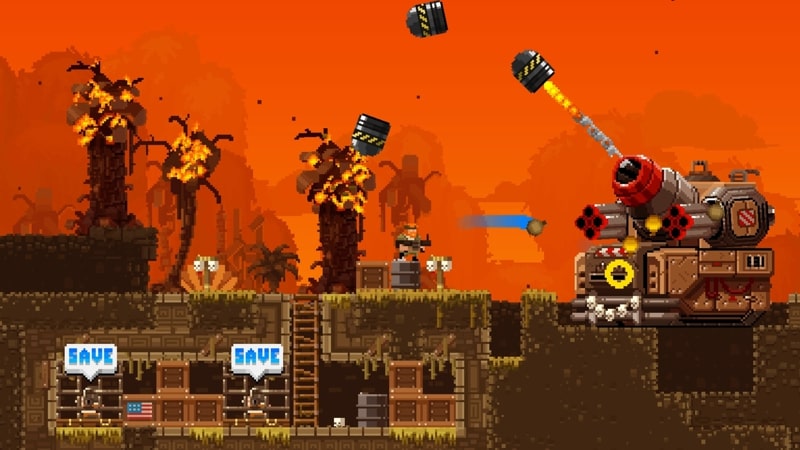 Though you don’t get to actually pick what Bro you want to play as, with the game randomly spawning you as a fresh one at the start of a level, or when you save a hostage across the levels. Saving them is also how you unlock more Bros, so it’s worth going out your way to find them all.