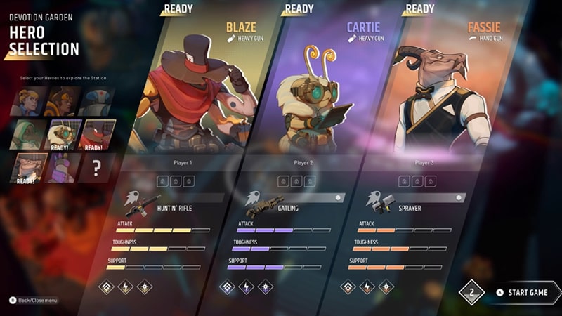 The heroes are an interesting bunch. For example, Sweeper is a space janitor with an ability that lets him control the flow of fights as he covers the floor in soapy water slowing enemies down.
