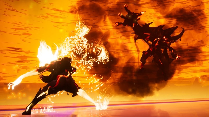 On top of this there is an Ikaruga-style colour system, where you can switch between orange and blue at the press of a trigger and to get the best impact you have to execute your parries in the corresponding colour.