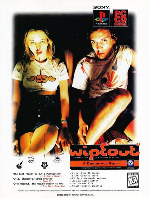 PlayStation consoles with Wipeout were installed in nightclubs. Wipeout also gave us some of the least subtle advertising in history. PlayStation, as a brand and platform, aimed to be edgy and cool. Sony’s adult-based marketing had also reignited a few lapsed gamers’ love for the pastime.
