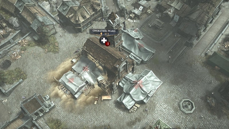 Visually, War Hospital is split into two styles. The first being the overview of the hospital; where you see the most detail. You can see staff run around from building to building, as well as the endless flow of wounded arriving.